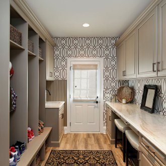 The entrance hall in a private house / cottage / log house is a significant territory, allowing you to create a creative mood, highlight the wallpaper pattern as a decorative element, create a harmonious union with furniture, textiles and small trinkets. All this is easily and simply accessible to everyone.
